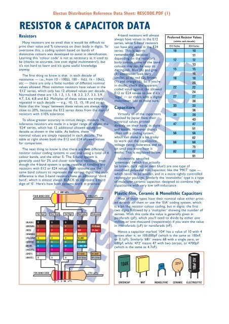 Preferred Values For Resistors And Capacitors North Coast Synthesis Ltd